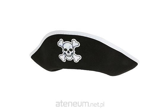 Na rondzie kapelusz posiada zdobienie w postaci białej dużej czaszki.