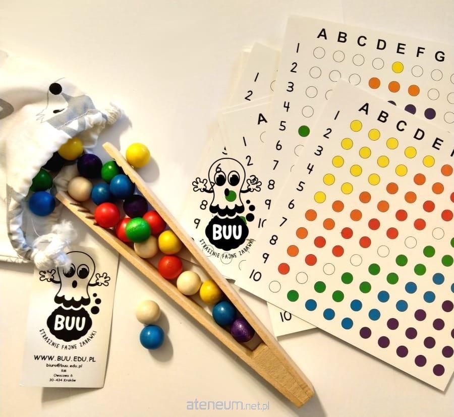 * drewniane kulki w siedmiu kolorach o średnicy 16mm (105 sztuk - po 15 kulek w 7 kolorach)