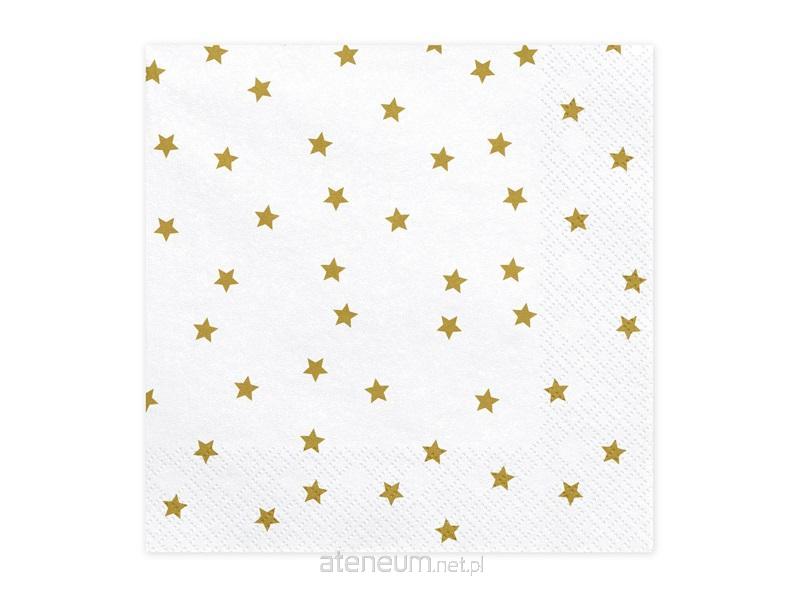 "Serwetki papierowe Gwiazdki w kolorze białym ze złotym nadrukiem, wymiary po rozłożeniu ok. 33 x 33 cm, wymiary po złożeniu ok. 16,5 x 16,5 cm. (1 op. / 20 szt.)"