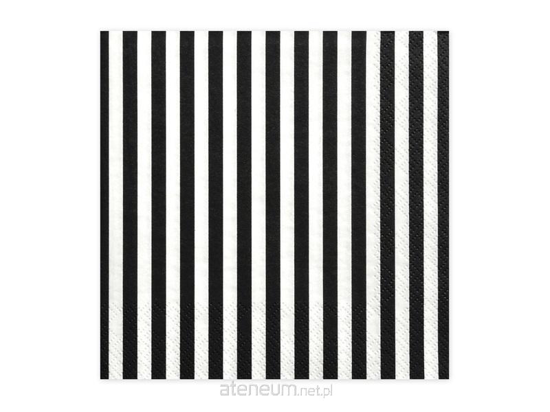 Serwetki trójwarstwowe Paski w kolorze białym z czarnym nadrukiem, wymiary 33x33 centymetry.(1 op. / 20 szt.)