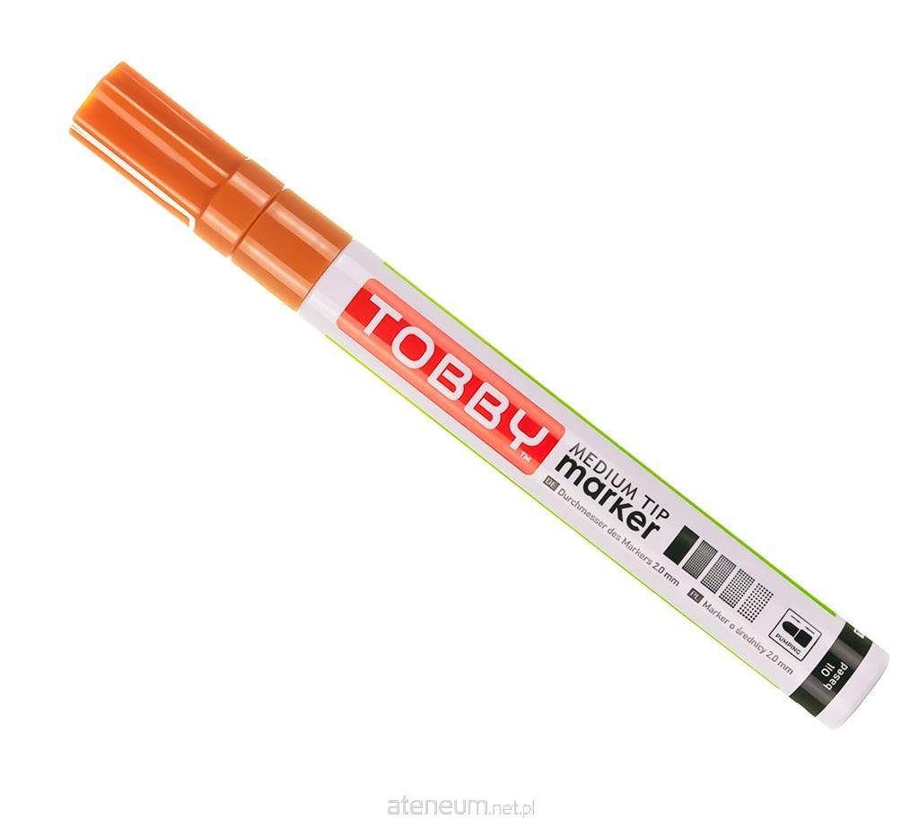 Permanentny Marker olejowy TOBBY Kolor: brązowy Wodoodporny i szybkoschnący tusz na bazie alkoholi. Bez problemu możemy nim pisać po powierzchniach ze stali, gumy, szkła, drewna, plastiku itp. Cechy: - Przeznaczony do stali, gumy, drewna, plastiku, szkła i innych powierzchni - Dobrze kryjący, trwały, niezmywalny wodą, nieblaknący, odporny na różne warunki atmosferyczne (woda, promienie UV) - Okrągła końcówka 2,0 mm - Marker olejny (lakierowy) posiada pompkę do tuszu, którą, przed pierwszym użyciem, należy pompować, aż spłynie tusz, (po wcześniejszym mocnym wstrząśnięciu markera)