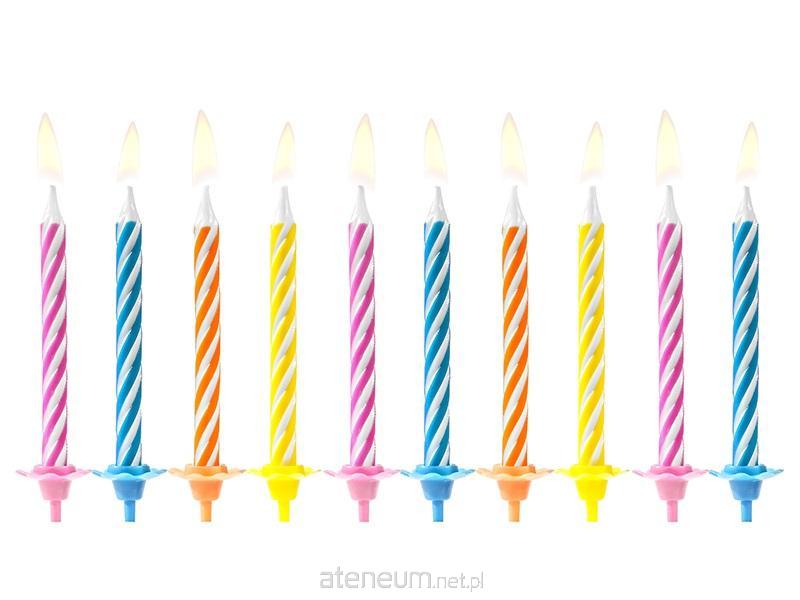 Świeczki urodzinowe, mix kolorów, rozmiar ok. 6 cm, w zestawie 10 świeczek i 10 podstawek.(1 op. / 10 szt.)