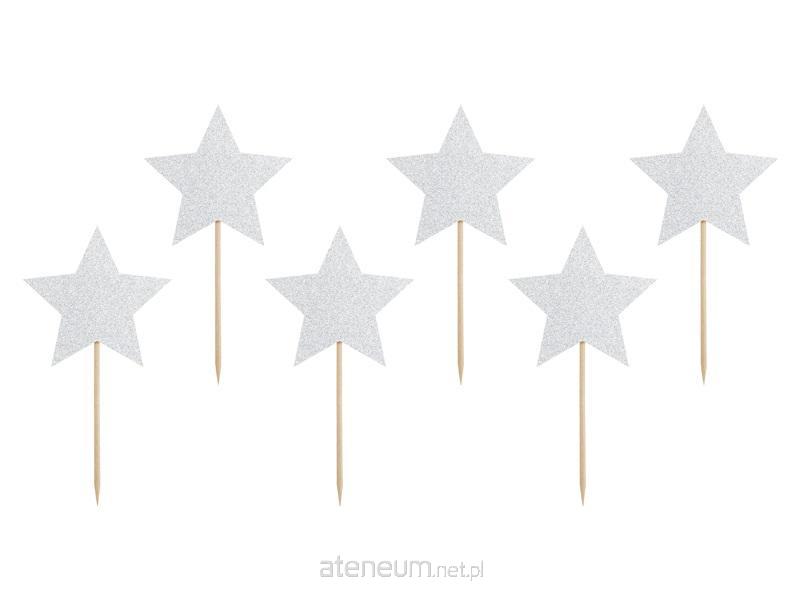 Dekoracje do muffinek Jednorożec - Gwiazdki w kolorze srebrnym brokatowym, wysokość ok. 11,5 cm.(1 op. / 6 szt.)