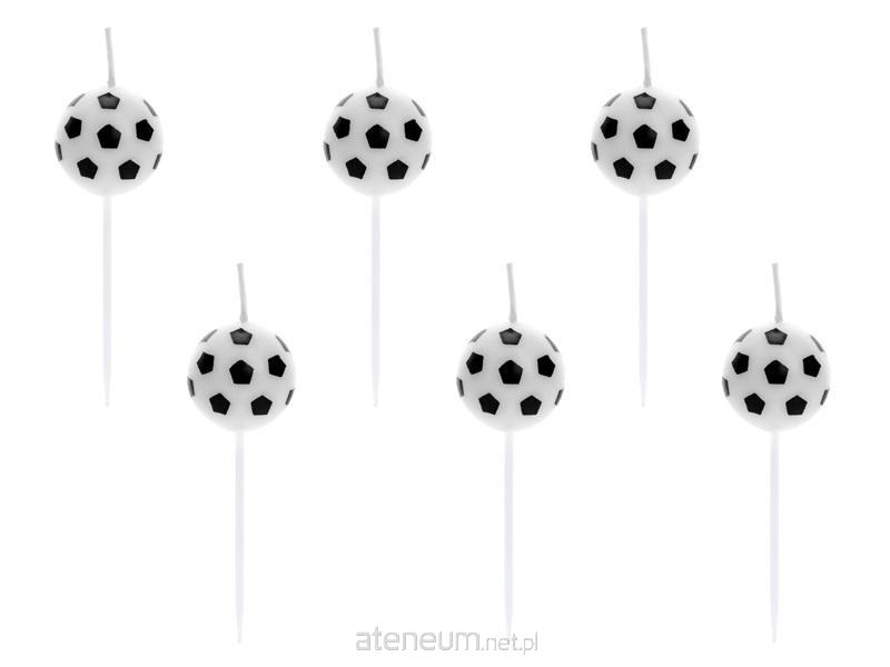 Świeczki urodzionwe w kształcie piłek, w kolorze biało - czarnym, wysokość ok. 2,5 cm.(1 op. / 6 szt.)