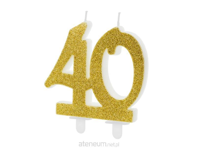 Świeczka urodzinowa liczba 40 w kolorze złotym brokatowym, rozmiar ok. 7.5 cm.