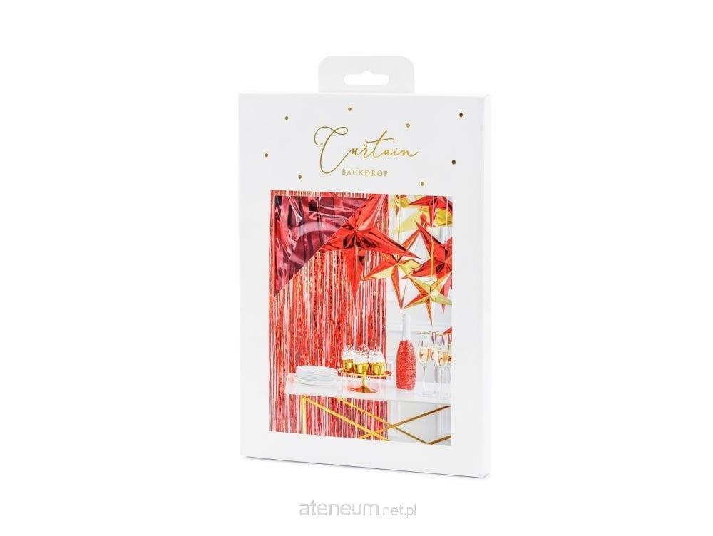 Kurtyna Party w kolorze czerwonym, szerokość około 90 centymetrów, wysokość około 250 centymetrów.