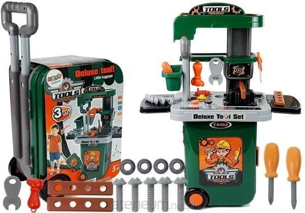 Jeśli Twoje dziecko lubię pomagać tacie przy majsterkowaniu to będzie idealny, przenośny zestaw dla niego. Warsztat w walizce to idealna rzecz, teraz może zabrać ją ze sobą wszędzie. Wysuwana rączka i kółka z tyłu pozwalają na to, że można ciągnąć ją za sobą. Po otworzeniu walizki, są wewnątrz wszystkie elementy, żeby stworzyć własny warsztat. Nie zajmuje dużo miejsca. Największą zaletą zestawu jest duża ilość elementów, dzięki czemu dziecko będzie mogło majsterkować i naprawiać wiele zabawek.