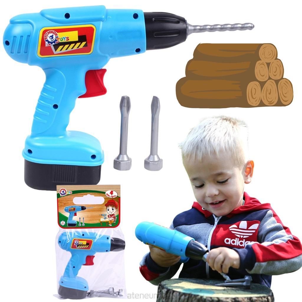 Obrót uchwytu wiertarskiego odbywa się za pomocą koła zębatego, przesuwanego palcem dziecka.