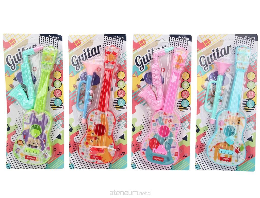 Plastikowa gitara w zestawie z plastikowym saksofonem