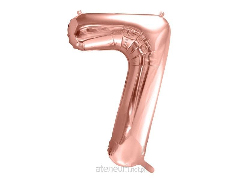 Balon foliowy metalizowany Cyfra ''7'' w kolorze różowego złota, rozmiar przed napompowaniem ok. 100 cm (39''), rozmiar po napompowaniu ok. 86 cm (34''). Do napomowania powietrzem i helem.