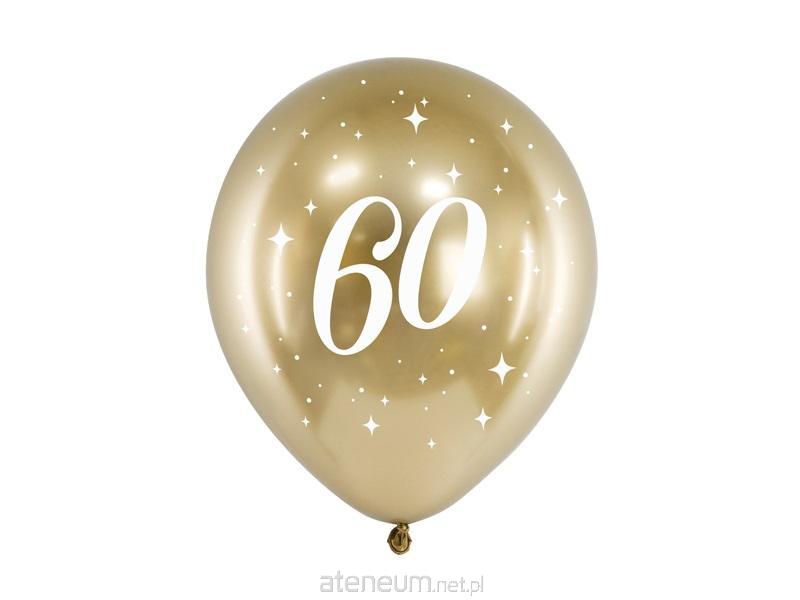 Balony Glossy w kolorze złotym z białym nadrukiem 60, średnica 30 cm.(1 op. / 6 szt.)