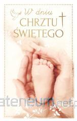 Kartka okolicznościowa z okazji Chrztu Świętego o treści: W podróży przez życie niech Cię zawsze Pan Bóg chroni i mocą Chrystusa przed pokusami obroni. Kochaj rodziców, by pociechę z Ciebie mieli, by radość w Tobie widzieli. Pamiętaj, że Bóg patrzy na Ciebie. W Dniu chrztu Świętego