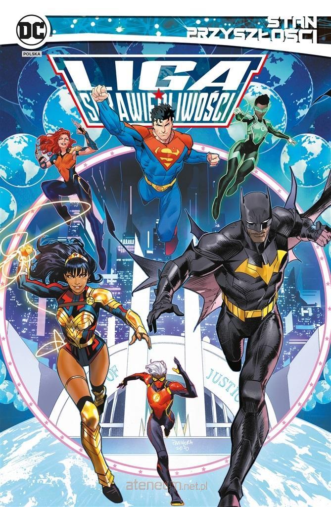 Ostatni tom eventu "Stan przyszłości" przedstawiającego, jak mogą potoczyć się losy świata po wydarzeniach, które wstrząsnęły czasoprzestrzenią po zakończeniu sagi "Batman: Death Metal". Na cykl składają się trzy tomy: "Stan przyszłości - Batman", "Stan przyszłości - Superman", "Stan przyszłości - Liga Sprawiedliwości". Nowa Liga Sprawiedliwości wyjaśnia zagadkową śmierć swoich największych wrogów! Mroczna Liga Sprawiedliwości powraca po latach, aby walczyć ze złem prześladującym magiczne istoty! Następczyni Wonder Woman schodzi do piekła po duszę wojowniczki! Barry Allen usiłuje ocalić swojego dawnego partnera Wally'ego Westa! A syn Czarnej Manty i córka Aquamana muszą się ponownie odnaleźć po tym, jak rozdzielił ich tajemniczy ocean. Album zawiera materiały pierwotnie opublikowane w amerykańskich zeszytach "Future State: Wonder Woman" #1-2, "Future State: The Flash" #1-2, "Future State: Aquaman" #1-2, "Future State: Justice League" #1-2.