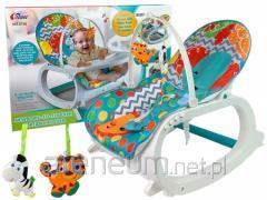 Kołyska Bujaczek Fotelik Krzesełko 2w1 Lew Dźwięki Wibracja Wygodny fotelik, w którym maluszek może odpoczywać i oddawać się zabawie, jest bardzo istotny podczas kompletowania wyprawki dla niemowlaka. Prezentujemy zielony bujaczek ozdobiony bajkowym lwem. Zaciekawi każdego malucha. Zaprojektowano go z myślą o noworodkach i starszych maluchach. Mogą z niego korzystać dzieci do 3 roku życia. Maksymalne obciążenie to aż 18 kg. Kołysanie to naturalny ruch dla Twojego dziecka, przypominający błogi czas spędzony w brzuszku mamy. Twój maluch kołysanie traktuje jako coś znanego i bezpiecznego. To właśnie podczas kołysania się uspokaja. Leżaczek dzięki intuicyjnej obsłudze, a przede wszystkim prostej konstrukcji, może być używany na różne sposoby. Z powodzeniem wykorzystasz go jako bujaczek dla maluszka, a także jako klasyczny fotelik dla dziecka, który rozłożysz w każdych warunkach. Wielofunkcyjność siedziska dla malucha sprawia, że możecie zabrać go ze sobą wszędzie, a w zależności od sytuacji zmienić jego zastosowanie. Dodatkowo nad siedziskiem znajduje się okrąg z przyjaznymi małymi zwierzątkami. Zebra po pociągnięciu za rączkę odtwarza muzykę, a boczne wiszące kolorowe zabawki przypominające zwierzątka stymulują zmysł dziecka. Ten fotelik rośnie razem z dzieckiem ! Gdy dziecko urośnie, wystarczy usunąć pasy zabezpieczające. Zawieszki z pewnością przyciągną uwagę dziecka, zachęcając do treningu rączek i zabawy. Bujak ukoi zmysły dziecka, pomoże w zasypianiu, dzięki wibracją. Posiada następujące funkcje: -siedzisko odchylane w 2 pozycjach - możliwość prania tkaniny w pralce - uspokajające wibracje, ułatwiające zasypianie - głębokie siedzisko - 3- punktowy pas zabezpieczający - wyjmowany okrąg z zabawkami, którego można zmienić pozycję do przodu bądź do tyłu Wymiary krzesełka: 64 cm x 40 cm x 66 cm Wymiary siedziska: długość- 71 cm szerokość- 40 cm max głębokość siedziska- 15 cm Wymiary wiszących zabawki: około 14 cm x 10 cm x 4 cm Wysokość okręgu od bujaczka: około 30 cm Długość okręgu: około 72 cm Wymiary opakowania: 53 cm x 39 cm x 9 cm Bujaczek zasilany jest 3 sztukami baterii AA 1,5V, które nie są dołączone do zestawu, natomiast zebra posiada dwie baterie AG13. Przeznaczony dla dzieci od pierwszych dni życia. Zgodny z normą EN71. Zabawka wykonana jest z certyfikowanego materiału.