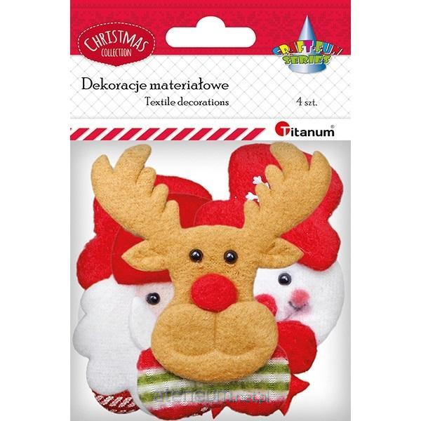 Materiałowe głowy Mikołaja 80x78mm, renifera 84x96mm, bałwanków 58x83/57x97mm 4szt.