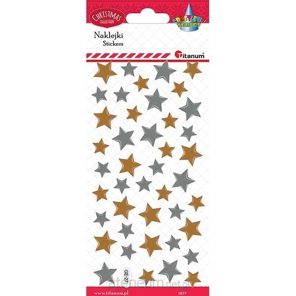 Naklejki wypukłe Gwiazdki 2 rozmiary srebrne, złote 43szt.