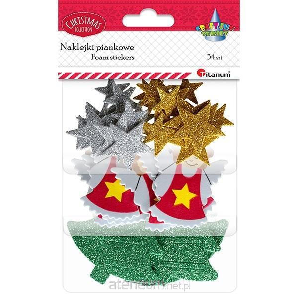 Naklejki piankowe brokatowe gwiazdki złote/srebrne 35x33/24x23mm, aniołki matowe 48x65mm, choinki zielone 66x70mm 34szt.