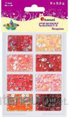 Cekiny 7mm 8 kolorów x 2,5g różowo-czerwone