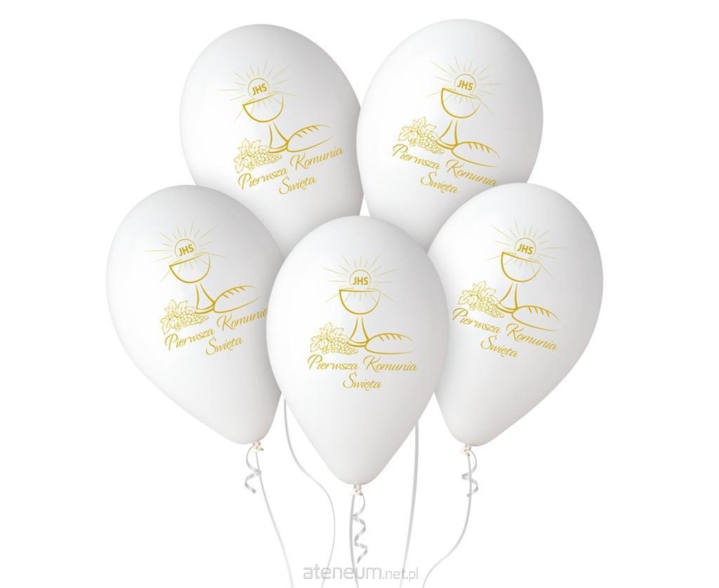 Balony Pierwsza Komunia Święta (kielich), Premium Hel 13", 25 szt. Wymiar balonów w centymetrach: ok. 33 cm Wymiar balonów w calach: 13 W opakowaniu: 25 szt. Kolor: Biały Nadruk: Pierwsza Komunia Święta Producent: Gemar Balony na pierwszą komunię wyróżniają się pięknym wzorem i najwyższą jakością. Balony wykonano z wytrzymałego lateksu, dzięki czemu mogą się pochwalić wysoką wytrzymałością. Nie pękają, a wygodna końcówka pozwoli Ci łatwo je związać. Miej pewność, że w tak ważnym dniu wszystko będzie dopięte na ostatni guzik. Balony z napisem Pierwsza Komunia Święta to piękna dekoracja na komunię, która nada charakteru uroczystości.
