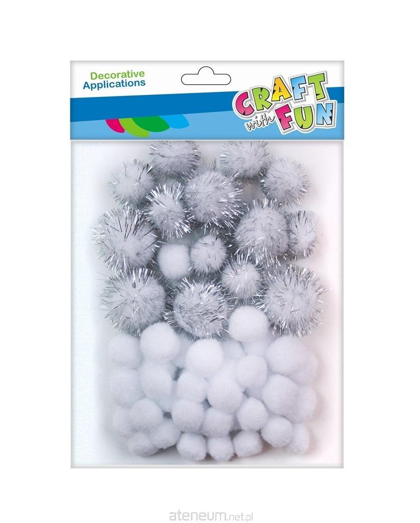 Pompony akrylowe i brokatowe mix białe 85szt.
