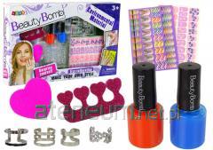 Zestaw kosmetyków dla dzieci. Zapakowane w metalowe etui metalowym etui. Zestaw zawiera; 3 kremowe cienie do powiek, 6 błyszczyków.
