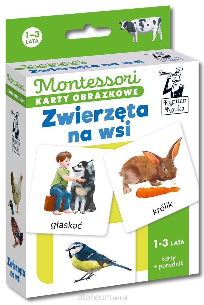 Jak nazywa się mały konik? Gdzie spotkasz żaby? Co robi świnka? Inspirowane metodą Montessori karty obrazkowe przedstawiają zwierzęta żyjące na wsi.