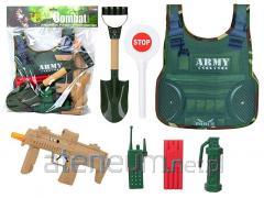 Zawartość zestawu: karabin metalowy, krótkofalówka, kask ochronny, naboje gumowe. Zabawka wykonana z plastiku i gumy. Pakowana w display po 6 szt.