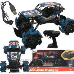 Auto terenowe sterowane pilotem z nowej serii JUNIOR, dla dzieci 6+. Samochód ma funkcje jazdy do przodu i do tyłu, w lewo oraz w prawo. Napęd 4x4. Posiada sygnały świetlne i dźwiękowe. Potężna moc silnika, nieślizgające się koła, antykolizyjna karoseria, zawieszenie sprężynowe. Wytrzymałe - spełni oczekiwania małego rajdowcy. Zabawka zawiera baterię akumulatorową. Do ładowania akumulatorków używać ładowarki z wyjściem USB A 5V (nie dołączono do zestawu).