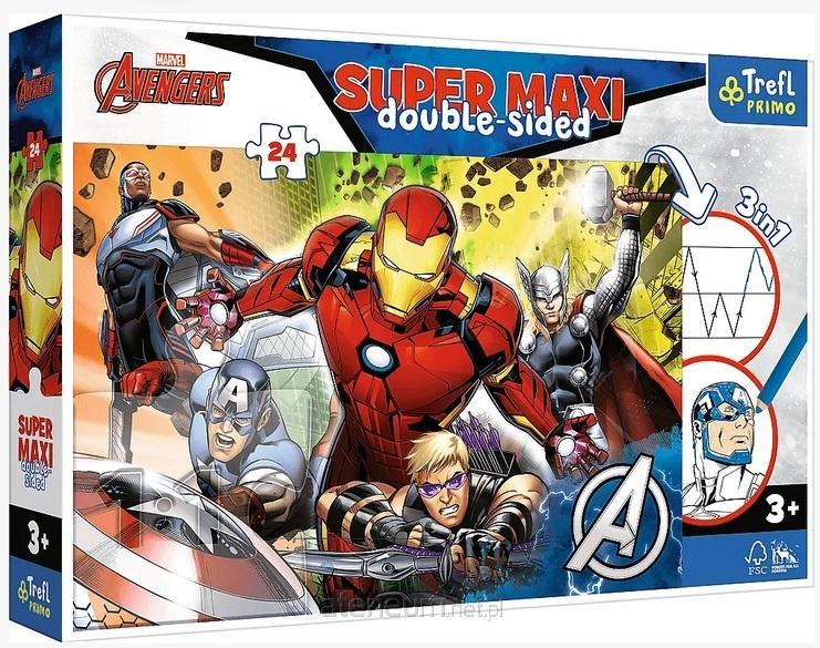 Silni Avengersi - puzzle z serii Prime to aż trzy zabawy w jednym produkcie! Duża dwustronna układanka dla małych dzieci od 3. roku życia - idealna dla maluchów, które mają za sobą układanie mniejszej liczby elementów. Puzzle podzielone są na 24 duże elementy. Na odwrocie każdej układanki znajdują się aż dwie zabawy kolorowanka oraz gra z elementami kolorowania - wyzwanie dla prawdziwych bystrzaków!