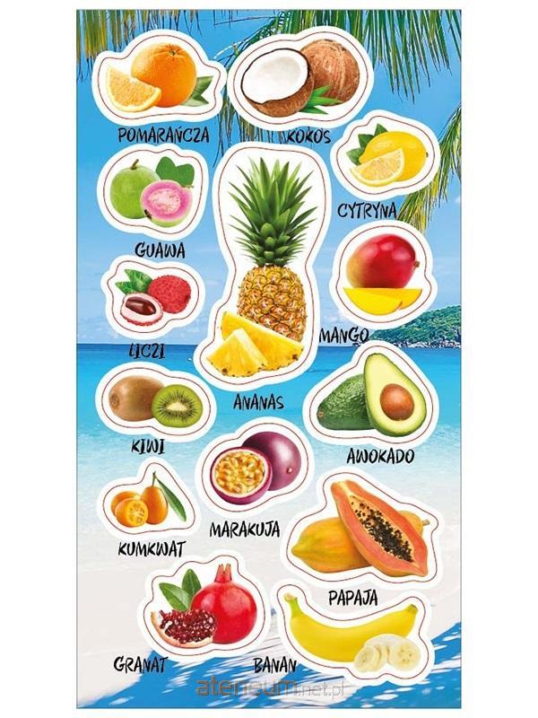 Zestaw naklejek do ozdoby zeszytów, albumów, listów, pocztówek ... 14 naklejek z owoców tropikalnych z przekrojem i opisami. POLECANE DO SZKÓŁ