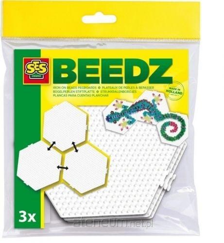 Specjalna podstawka z wypustkami do ułożenia mozaiki z koralików w sześciokątnym kształcie. Po ułożeniu koralików na szablonie, można przeprasować je przez pergamin aby otrzymać trwały obrazek. W opakowaniu trzy sztuki.