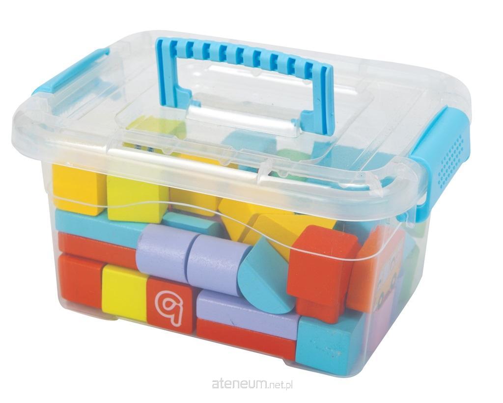Zestaw 76 sztuk kolorowych klocków zapakowanych w plastikowy pojemnik z rączką. Dzięki różnorodnym kształtom z klocków można zbudować niezliczona ilość konstrukcji. Do zestawu dołączona została instrukcja z wzorami.