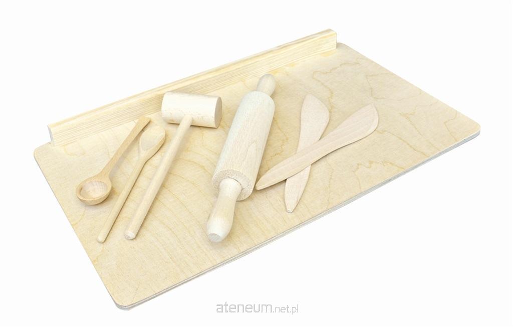 Większy odpowiednik zestawu kuchennego mini. Składa się z drewnianego tłuczka, wałka, 2 noży, 2 łyżek oraz stolnicy.