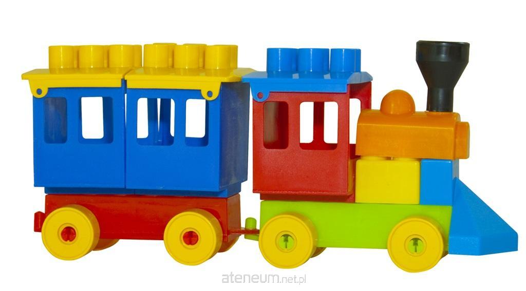 Zabawka przedstawia, wykonany z klocków model pociągu. W zestawie znajduje się lokomotywa oraz 1 wagon.
