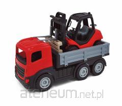 Zabawka imituje model samochodowego pociągu, który został wykonany w całości z klocków. W zestawie znajduje się kierowca na samochodzie oraz dwie lawety z samochodzikami.