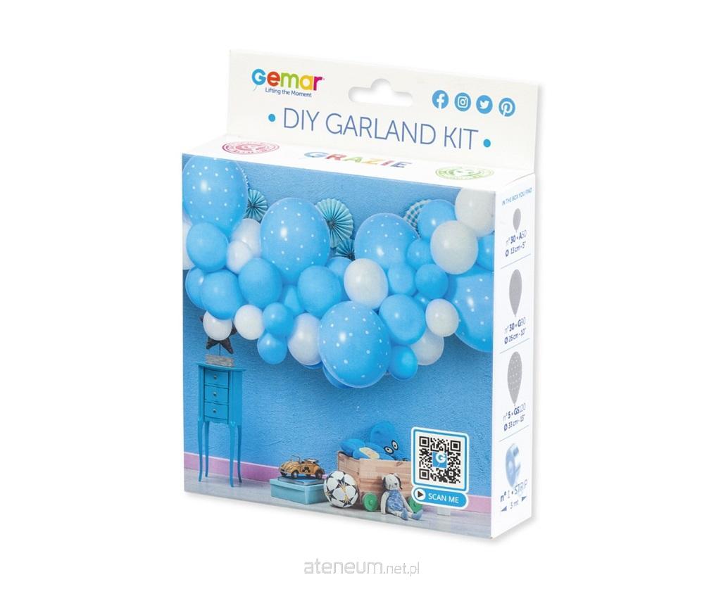 Girlanda balonowa DIY Baby Blue, 65 balonów + taśma GIRLANDA BALONOWA DIY BABY SHOWER CHŁOPCA Zestaw do Girlandy Balonowej zawiera: 30 balonów - 13 cm (5") 30 balonów - 26 cm (10") 5 balonów - 33 cm (13") 1 taśma do girland - 3 metry Wymiary gotowej girlandy: dł: 200cm x szer. 50cm x wys. 70cm* Kolory: Niebieski/błękitny Producent: Gemar Chcesz rozpocząć przygodę z girlandami, ale nie wiesz od czego zacząć? Nie wiesz ile balonów Ci wystarczy, jak dobrać kolory i rozmiary? Nie zniechęcaj się i nie pozwól zgasić zapału już na starcie. Poznaj zestaw do girlandy balonowej przygotowany przez włoskich dekoratorów balonowych specjalnie dla Ciebie. Gotowy zestaw do girlandy balonowej na baby shower chłopca pozwoli Ci łatwo stworzyć piękną dekorację z balonów. Wszystko, czego potrzebujesz znajduje się w środku opakowania. Zacznij tworzyć girlandę od razu po rozpakowaniu pudełka. Uwolnij swoją kreatywność i twórz oszałamiające girlandy balonowe z zestawem od renomowanego producenta Gemar. Balony do girlandy Gemar to jakość sama w sobie. Nie pękają i łatwo je zwiążesz dzięki długiej końcówce. No i te kolory! Ciężko oderwać od nich wzrok. Girlanda balonowa DIY to świetny sposób na rozpoczęcie przygody z balonowymi dekoracjami, jednocześnie pracując z produktami używanymi przez profesjonalistów. *ostateczny rozmiar girlandy może się nieco różnić od podanych wartości, w zależności od stopnia napełnienia balonów i sposobu montażu.