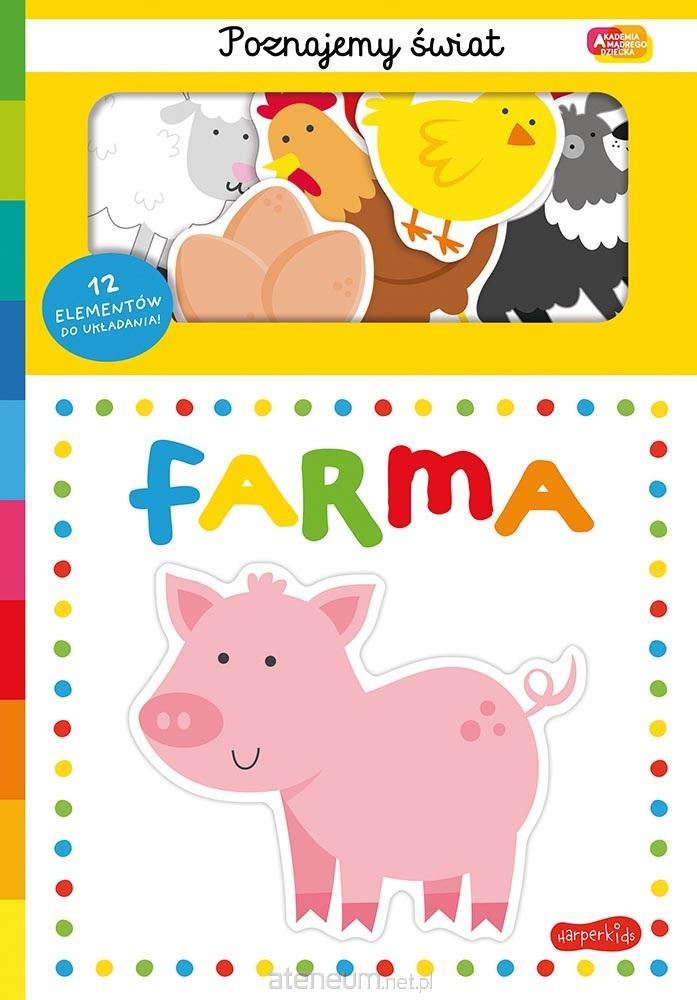 Książka pod tytułem: Farma to kolejna interesująca pozycja w serii Poznajemy świat Akademii Mądrego Dziecka. Książeczka wraz z dwunastoma puzzlami znajduje się w etui, dzięki czemu wszystko mamy ładnie razem zapakowane i do tego mamy pewność, że nie zgubimy puzzli po wspólnej zabawie z dzieckiem. W książeczce znajdziemy krótkie polecenia zachęcające malca do interakcji. Trzeba wskazać na stronie żółte kurczątko, czy spróbować naśladować dźwięk traktora lub miauczeć kot. Dodatkowo na każdej stronie mamy trzy otwory z wizerunkiem zwierzątek lub przedmiotów, w które trzeba dopasować puzzle. Każdy, kolorowy puzzel jest z jednej strony podpisany, by uczyć się nazw zwierząt i przedmiotów z gospodarstwa, z drugiej strony ma kolorowy obrazek. Maluszek przez zabawę ćwiczy swoje paluszki oraz skupienie. W serii Poznajemy świat ukazały się: Kolory, Słowa oraz Pojazdy.