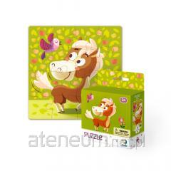 Układanka z grubej tektury ze specjalnymi kształtami. Elementy układanek mają kształty pasujące do tematu obrazka.