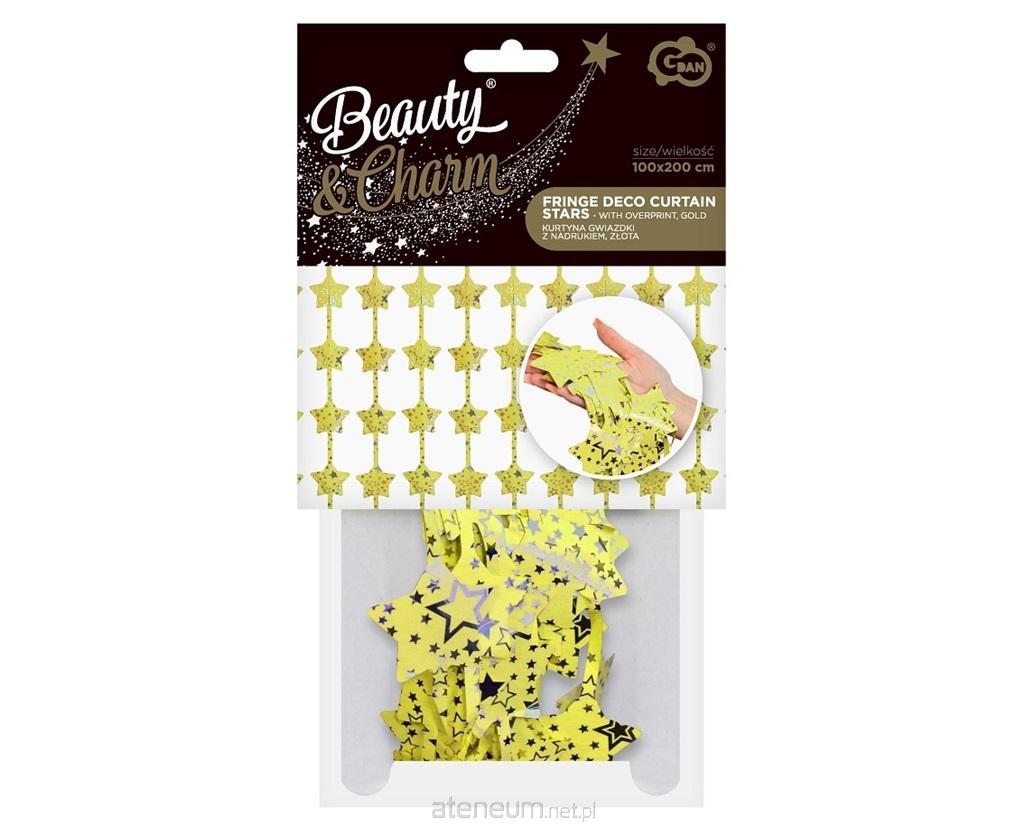 Kurtyna B&C złota spirale srebrne gwiazdki 100x200