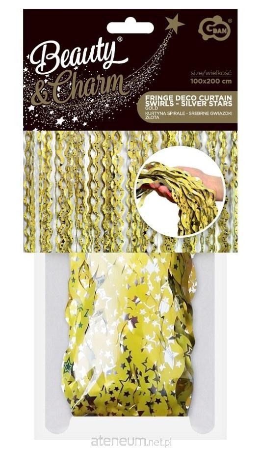 Kurtyna B&C złota spirale srebrne gwiazdki 100x200cm