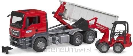 MAN TGS z kontenerem rolkowym i z minikoparką Schaffer.