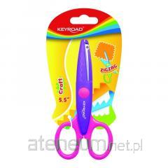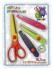 Idealne rozwiązanie do wszelkich wycinanek. W zestawie nożyczki o długości 15,5 cm. Z trzema wymiennymi kompletami ostrzy o różnych kształtach wycinania. Każda z wymiennych końcówek jest w innym kolorze. Plastikowa rączka i osłonięte dla bezpieczeństwa ostrza. Opakowanie blistrowe z zawieszką.