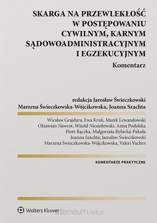Publikacja stanowi aktualne, kompleksowe ujęcie problematyki przewlekłości postępowania przygotowawczego prowadzonego lub nadzorowanego przez prokuratora oraz postępowania sądowego. Autorzy omówili również regulację dotyczącą legitymacji strony do złożenia skargi na naruszenie jej praw, wskutek zaistnienia w toku postępowania nieuzasadnionej zwłoki. Opisywane zagadnienia zostały ujęte w sposób możliwie szeroki, z uwzględnieniem specyfiki każdego z postępowań sądowych, postępowania przygotowawczego oraz postępowania egzekucyjnego. Odniesiono się również do orzecznictwa i poglądów doktryny. Komentarz został przygotowany przez doświadczonych praktyków, stąd ma on wymiar praktyczny i stanowi cenną pozycję dla praktyków różnych profesji prawniczych, w tym adwokatów, radców prawnych, komorników i doradców restrukturyzacyjnych. Zainteresuje również przedstawicieli nauki prawa.