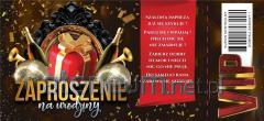Zaproszenie wykonane za grubym 350g papierze, dodatkowo uszlachetnione lakierem UV ( przypomina sztywną kartę ) Zastosowana perforacja, dzięki której można oderwać kupon. Z drugiej strony zaproszenia, szablon do wypełnienia długopisem lub piórem.
