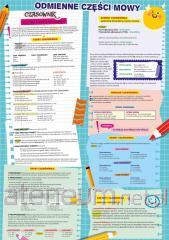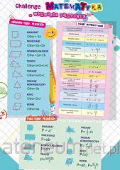 Dwustronna plansza/ściągi, wydrukowany na grubym papierze kredowym, dodatkowo pokryty folią błyszczącą. Rogi planszy są zaokrąglone.