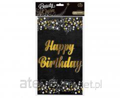 Obrus foliowy B&C Happy Birthday czarny 137x183cm
