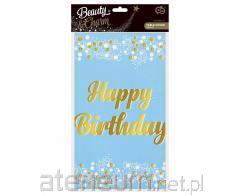 Obrus foliowy B&C Happy Birthday niebieski 137x183