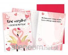 Kartka PR jest zdobiona przynajmniej dwoma rodzajami uszlachetnień - metaliczne lub perłowe folie, brokat, tłoczenie itp.- tyle piękna w takim drobiazgu! Każda kartka Passion Premium ma kolorowe wnętrze z tekstem wyjątkowych życzeń i grafiką, w komplecie jest także dopasowana kolorystycznie koperta. Cechy szczególne: wielkość: B6, 16.6 x 11.7 cm po złożeniu, koperta: dopasowana w zestawie, zdobienia: przynajmniej dwa rodzaje, często więcej - złota, srebrna lub perłowa folia, brokat, tłoczenia, wnętrze kartki: kolorowe, z życzeniami, okazja: Walentynki