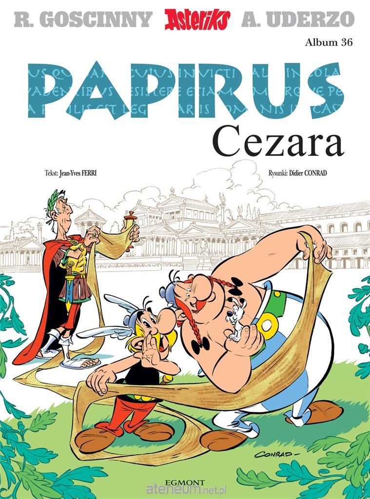 Dwa lata po sukcesie Asteriksa u Piktów postacie stworzone przez Ren Goscinnego i Alberta Uderzo powracają w nowym albumie napisanym przez Jean-Yvesa Ferriego i narysowanym przez Didiera Conrada. Znajdziecie tu wszystkie składniki magicznego napoju Asteriksa: historia Rzymu i dzieje Galów zostaną przejrzane i skorygowane przy użyciu gagów i kalamburów! Na Teutatesa! W październiku 2015 roku cała Galia będzie zajęta... czytaniem Papirusu Cezara!
