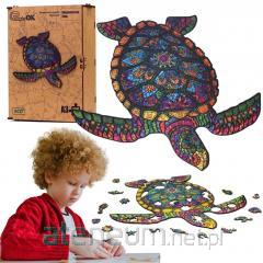 Układanka składa się z elementów o ciekawych i nietypowych kształtach (np. obiekty, organizmy). Gotowa układanka nie będzie miała klasycznego prostokątnego kształtu, natomiast odwzorowywać będzie kształt danego zwierzątka. Przy układaniu warto sugerować się grafiką z pudełka. Wszystkie elementy są zapakowane w drewniane opakowanie, które chroni zawartość. Produkt może być oryginalną ozdobą każdego pokoju.
